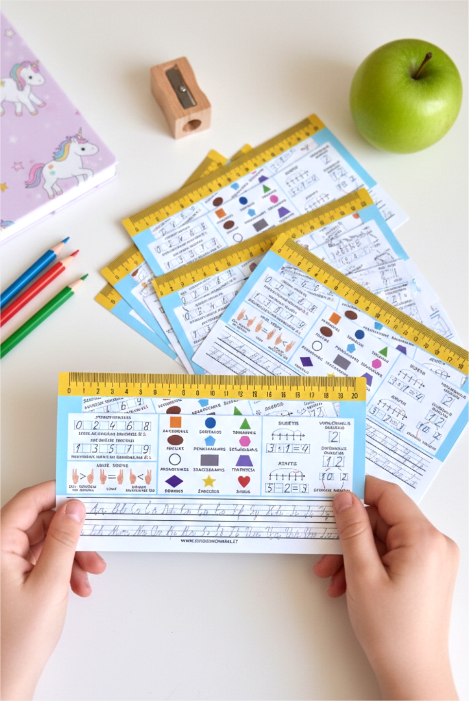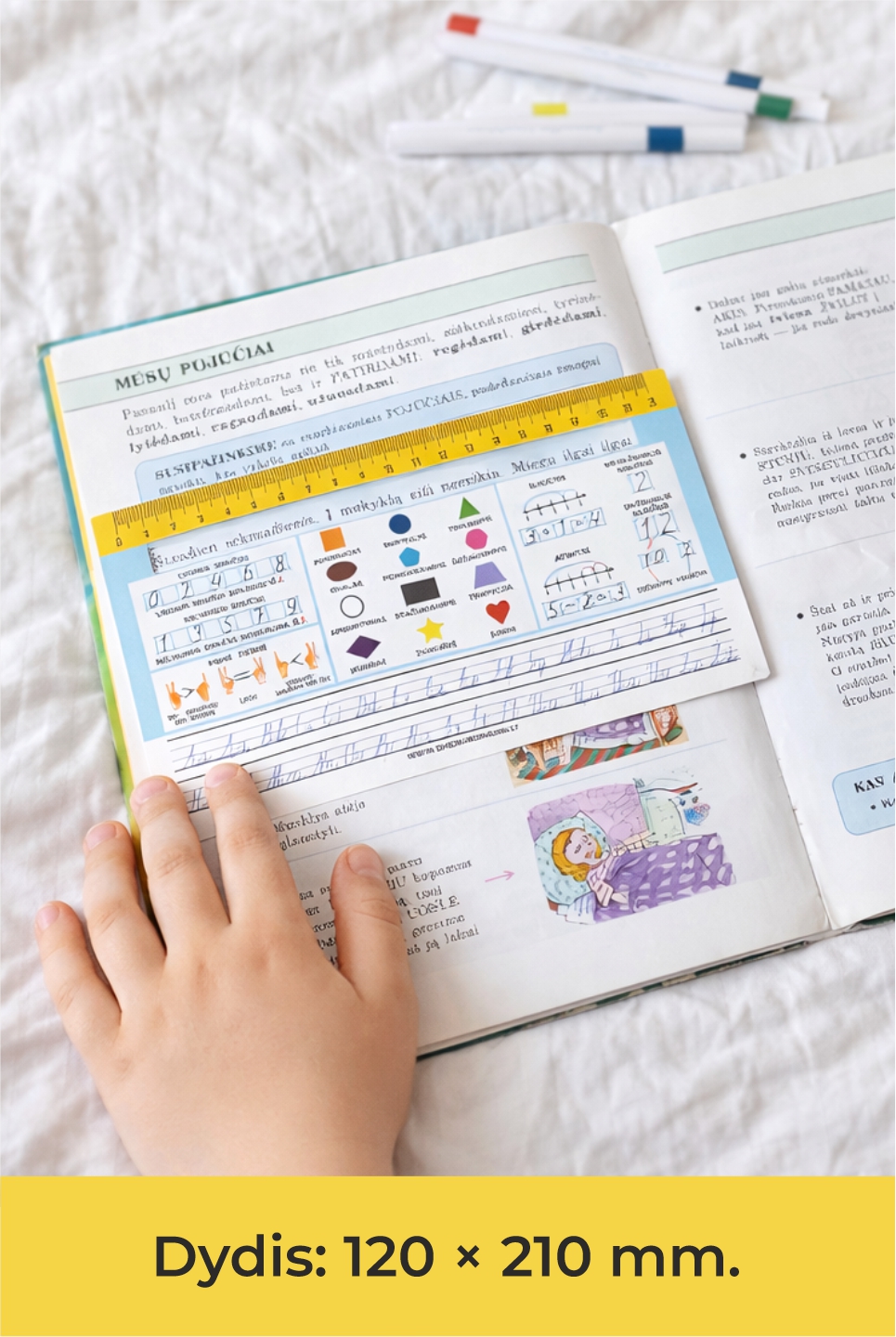 Tai daugiafunkcė mokomoji, skaitymo liniuotė–atmintinė, sukurta padėti vaikams žengti pirmuosius žingsnius skaitymo, rašymo ir matematikos pasaulyje. Priemonė ypač naudinga paruošiamukams ir 1 klasės mokiniams, taip pat vaikams, kuriems reikia papildomos vizualinės atramos mokantis.