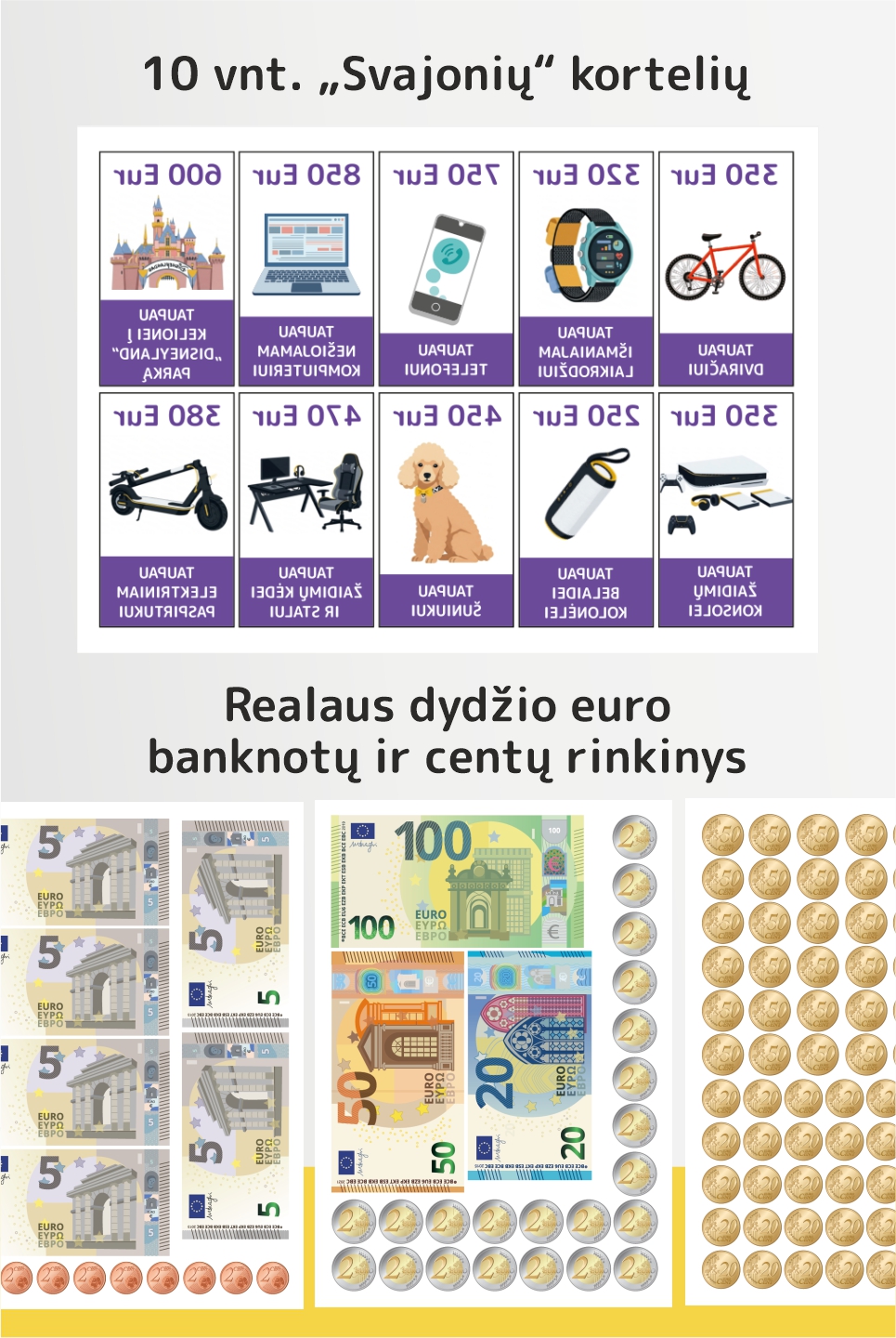 3. 10 vnt. „Svajonių“ korteles.