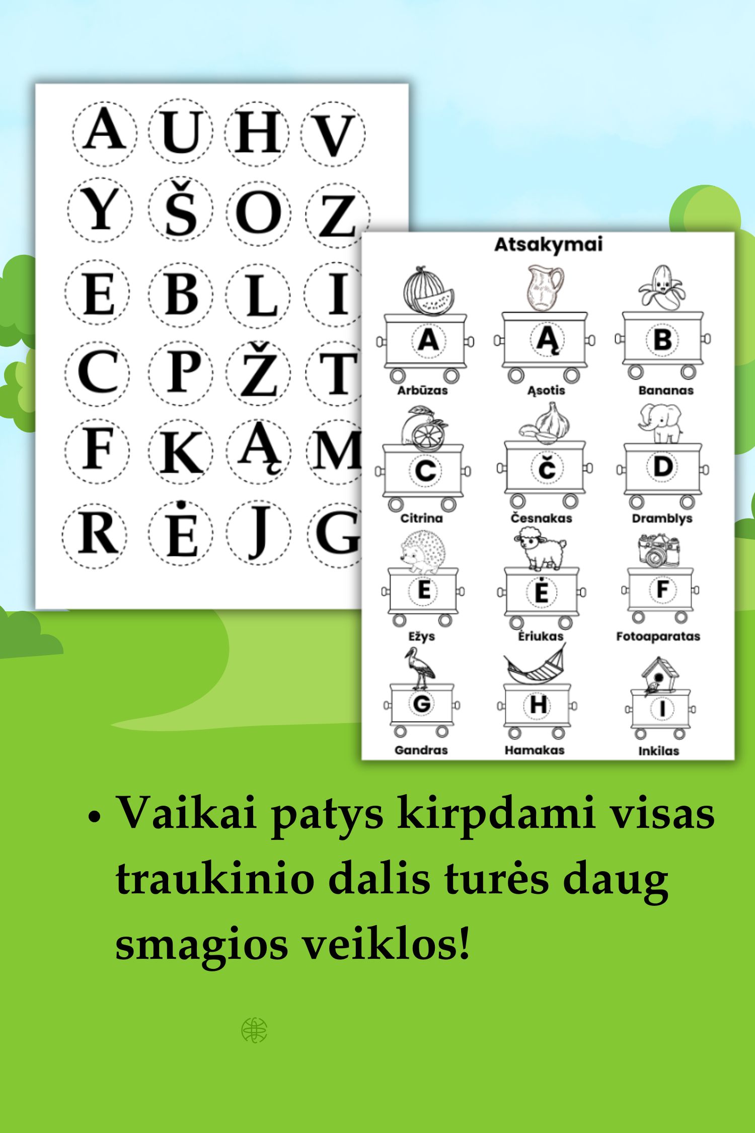 PDF formatas leidžia užduotis spausdinti neribotai, todėl vaikas galės mokytis ir tobulėti savo tempu – tiek kartų, kiek tik norisi!
