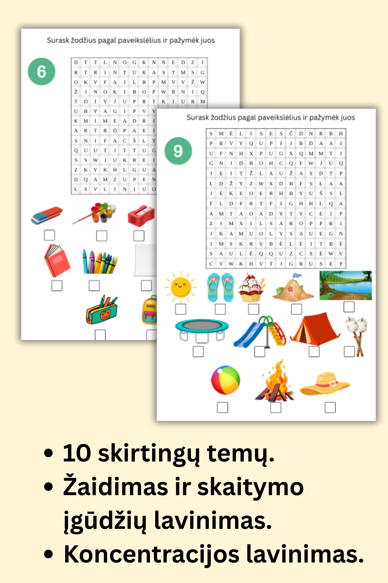 - „Surask žodį“ tipo užduotys (žodžių paieška).