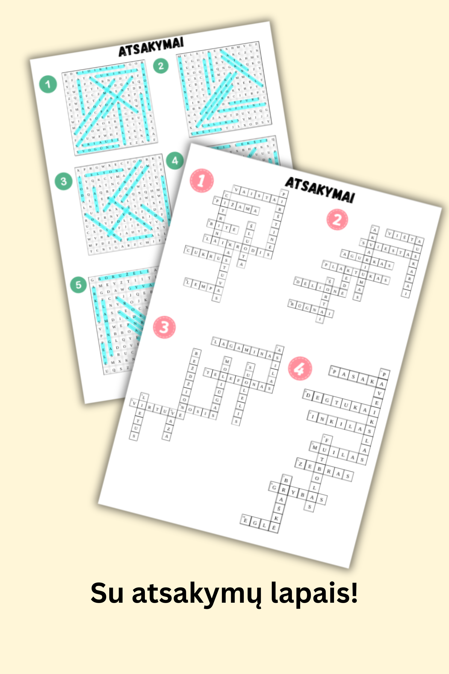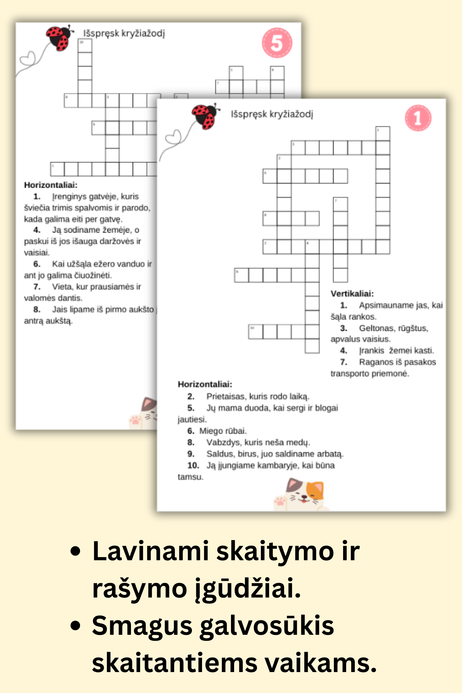 - Kryžiažodžiai su vaikams pritaikytais žodžiais.